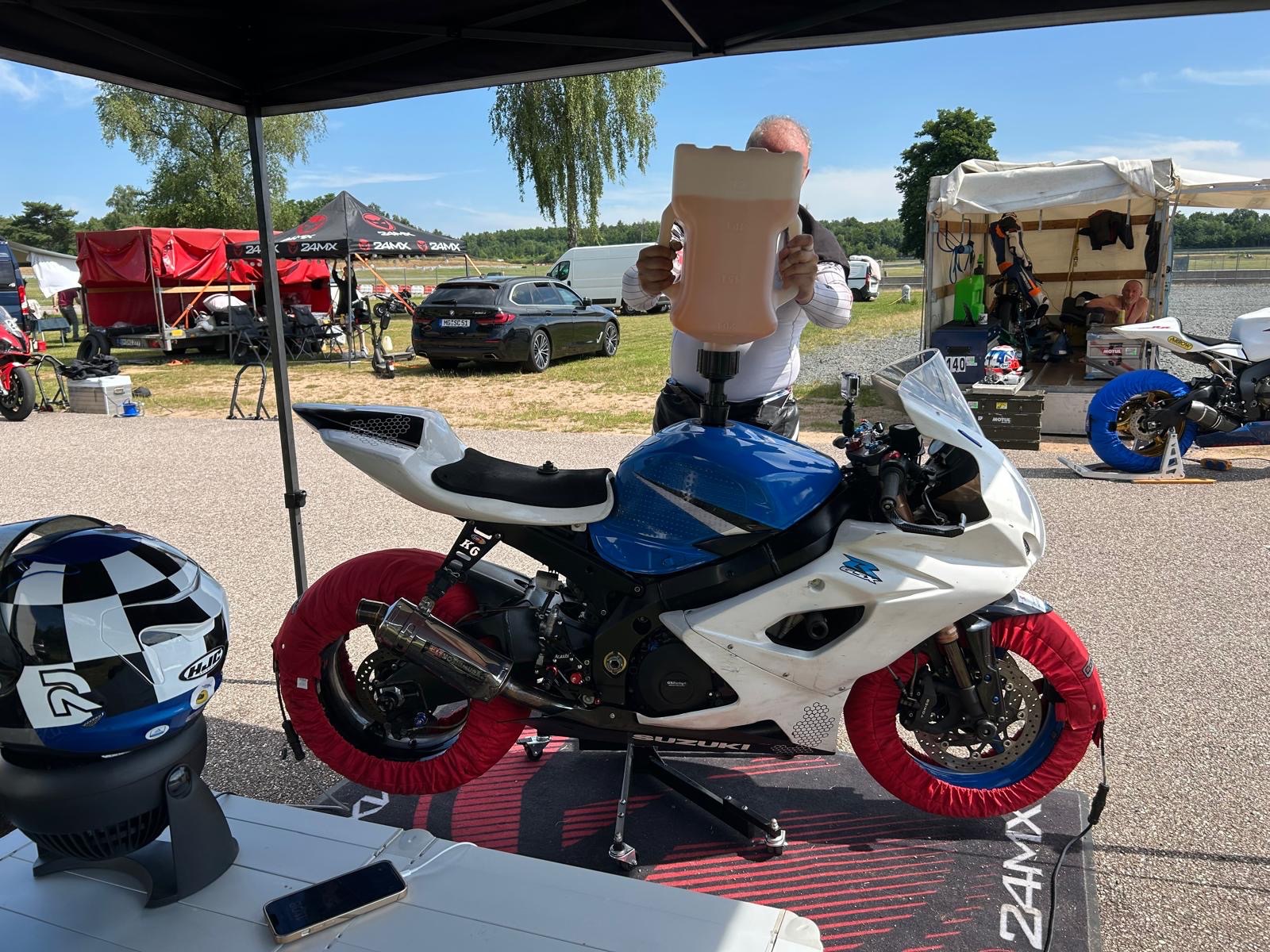 Die Fahrerbesprechung ist unspektakulär. Ingo von Steil-Racing macht das gewohnt routiniert. In 2025 starte ich zum ersten Mal mit der Suzuki GSXR 1000 K6. Eingeteilt habe ich mich weiterhin in die gelbe Gruppe „Sportfahrer“. Die Temperaturen für dieses Jahr sind rund um die 30 Grad gemeldet. Das wird also ein „heißes“ Unterfangen.