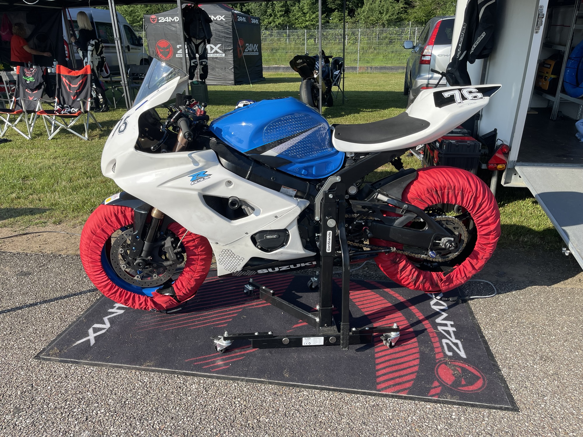 Nach zwei Std. Anfahrt, pünktlich um 06:30 Uhr angekommen und zeitnah aufgebaut. Dann gehts umgehend zur Anmeldung und zur technischen Abnahme inkl. Zeitenmessaufkleber. Anschließend die Reifenwärmer aufgezogen und vorgewärmt für den Start um 09:00 Uhr in der ersten Gruppen.