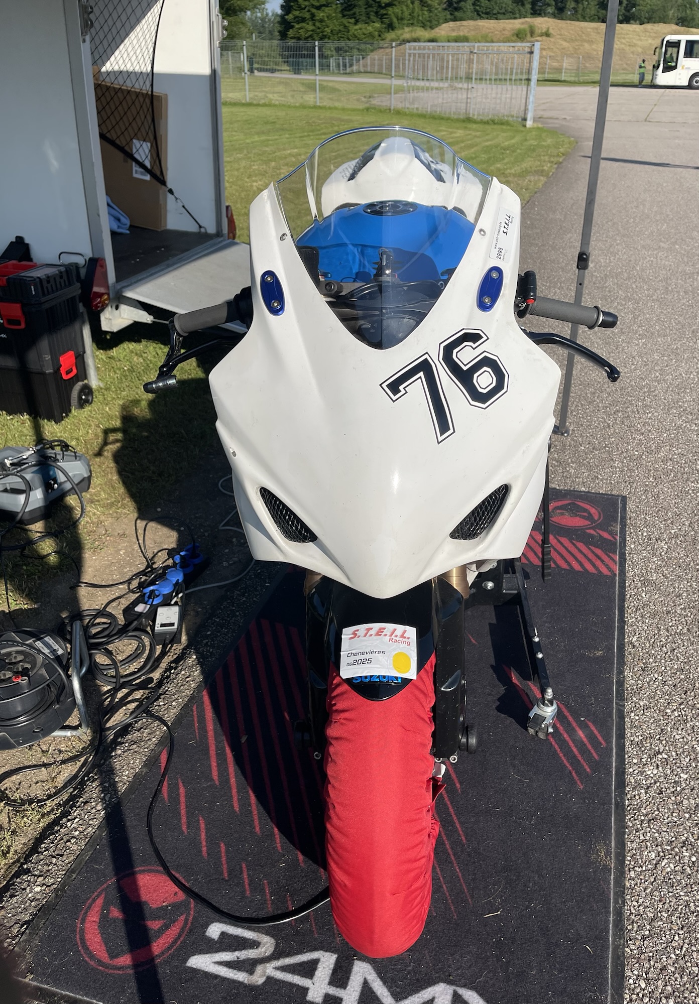 Rote Flaggen und Stürze gehören leider zur Tagesordnng. Das geht nun mal verdammt schnell und um Ingo zu zitieren: „… wir spielen nu mal kei Schach…“. Bisher ging es glücklicherweise mit leichtes Bläsuren (inkl. Schlüsselbeinbrauch beim Fahrerlagernachbar nach seinem ersten Turn in Chenevières) durch den ersten Tag.