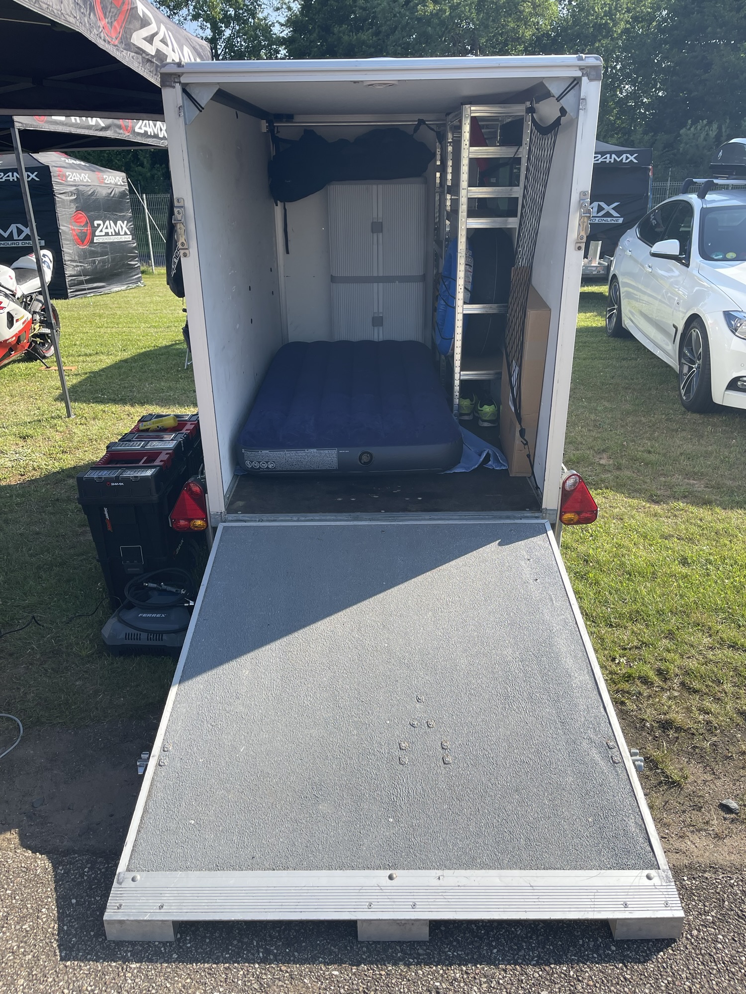 Ach ja, mein Schlafgemach muss noch hergerichtet werden… Zusammen mit meinem Notstrom-Aggregat und meinem zweiten Reifensatz teile ich mir die Box für die Nacht. Schlaft gut …